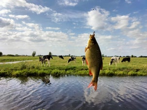 er zijn er zo veel. oké nu de sessie, John ving ze eerste voorn, al gauw. ik was nog aan het het op zetten van me spullen. eerst zo als altijd me karper hengel. ze waren aan het springen zij John van morgen vroeg al, toen ik de hond aan het uit laten was rond half ze. na 15 minuten lag mijn dobbertje ook te dansen op de golven van het water, en te smeken mag ik onder mag ik onder.dat duurden niet lang, een leuke weg loper was dat en hangen.