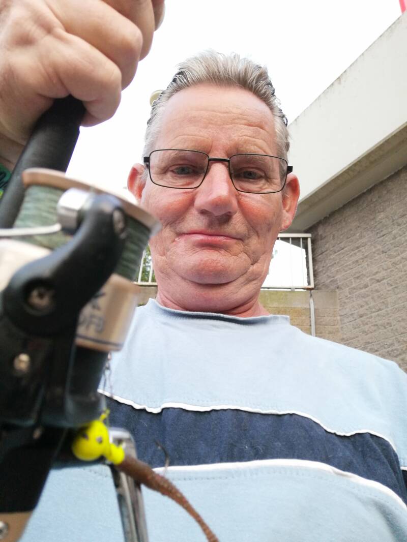 me maat John in Actie met ze spin hengel