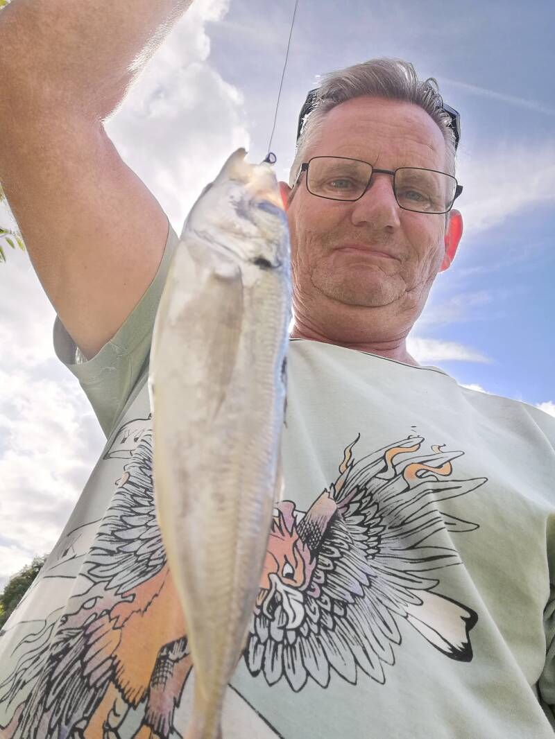 Bij collega liep het wat stroef ,op deze plek moet je vissen net aan de rand van de vaargeul en die moet je echt zelf ervaren met ingooien waar die precies ligt . Zijn eerste vis was een dikke brasem daar kwamen we dus niet voor .